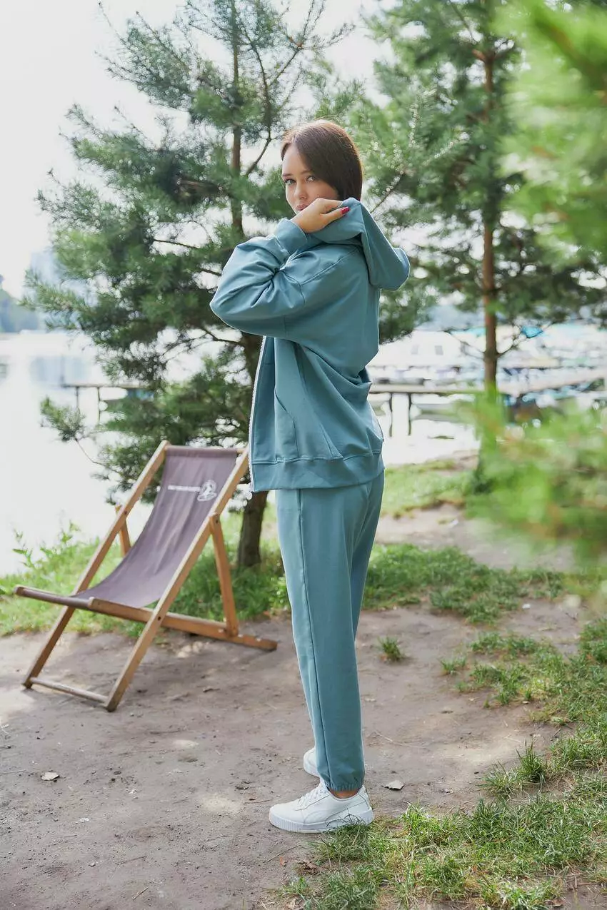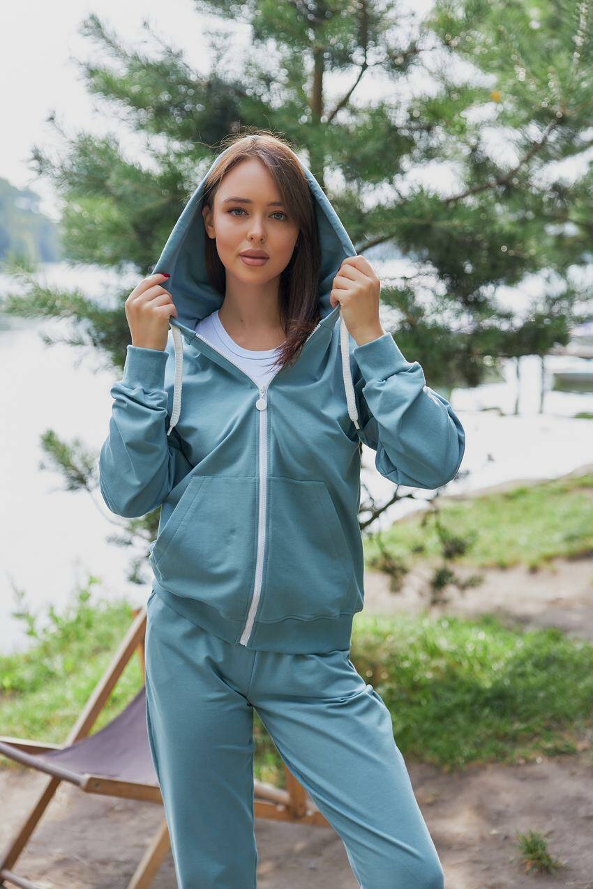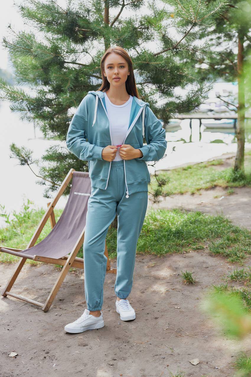 Спортивний костюм жіночий (худі на замку + джогери) темно-блакитний (М136.2) XXL