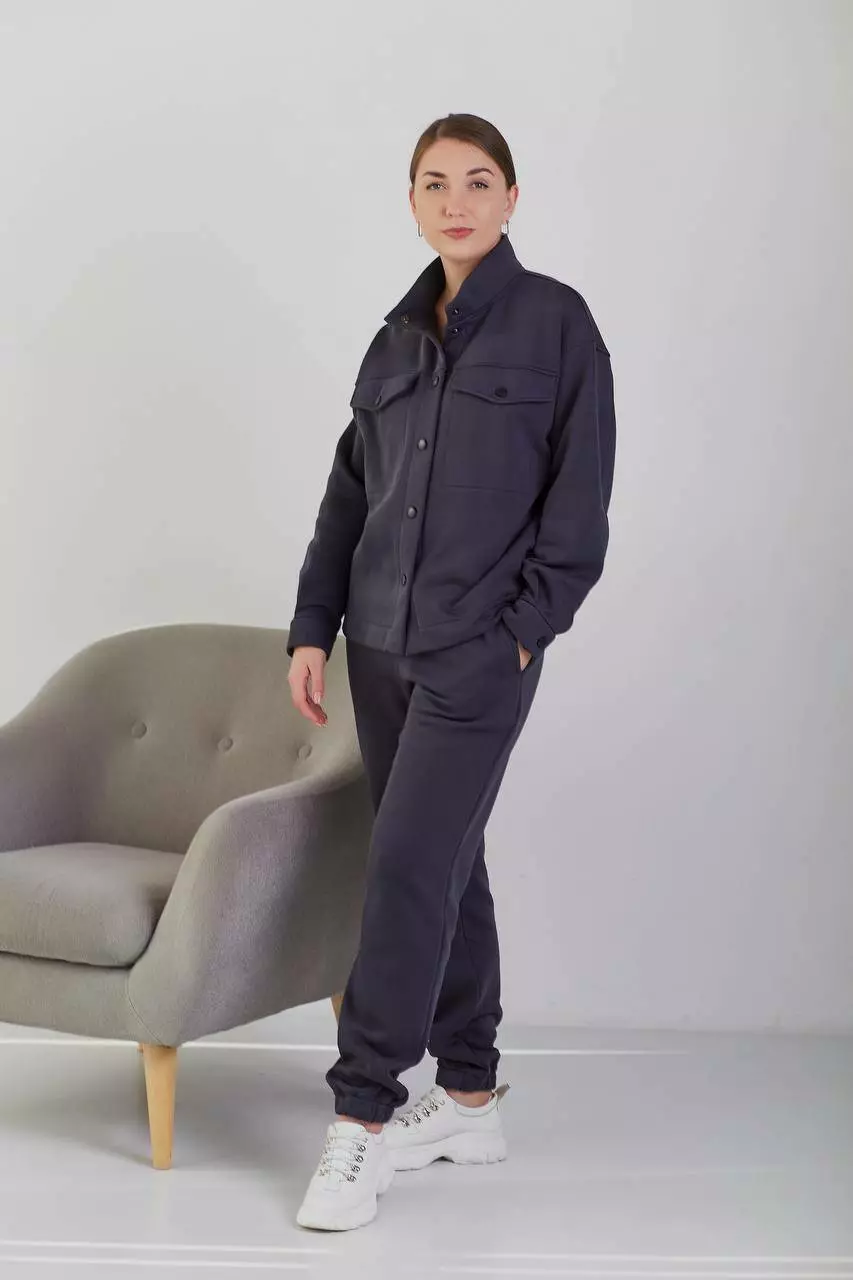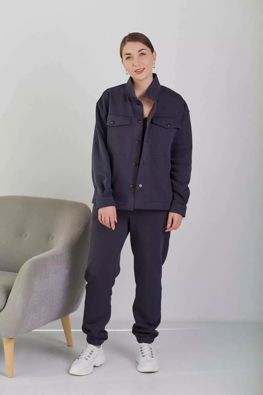 Спортивний костюм жіночий на кнопках з начосом графіт (М114) XL