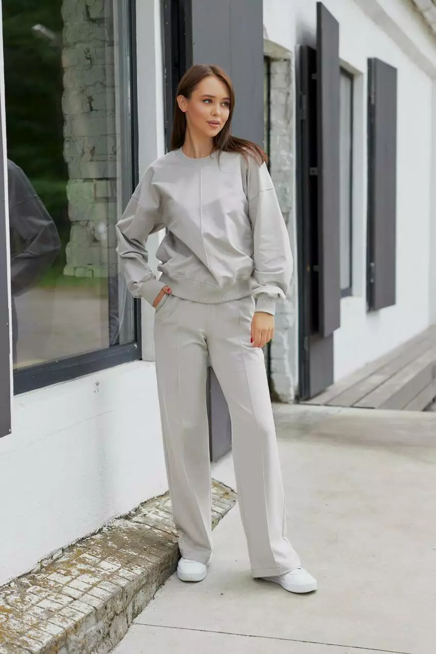 Спортивний костюм жіночий світшот та штани палацо 2х-нитка, світло-сірий (М128.2) S