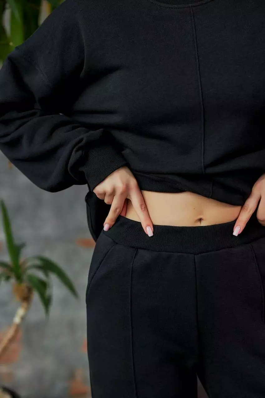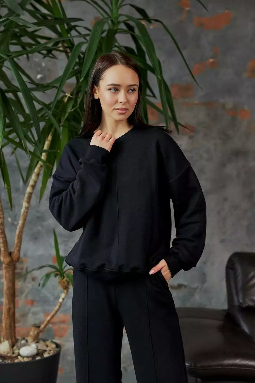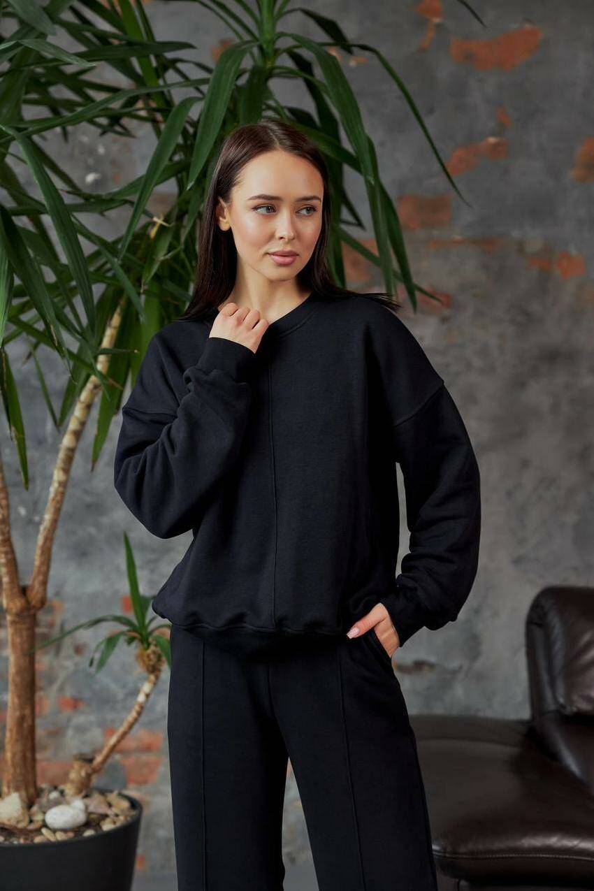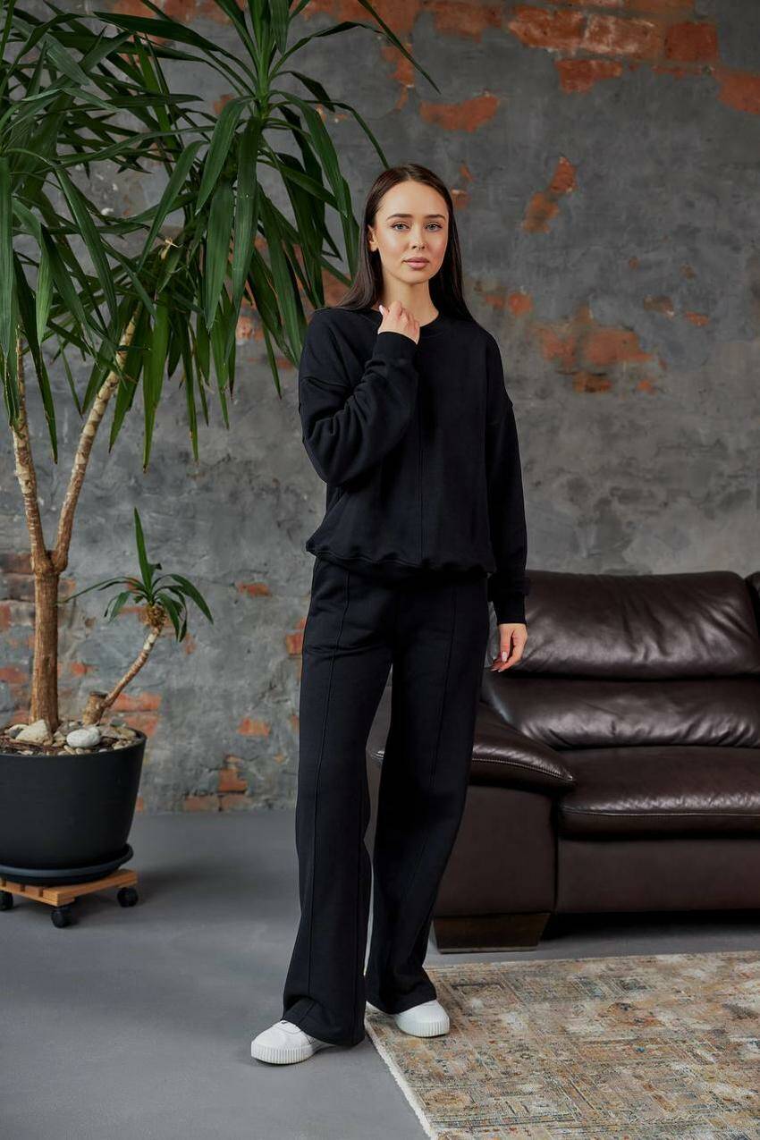 Спортивний костюм жіночий світшот та штани прямі 3х-нитка, чорний (М128.3) S