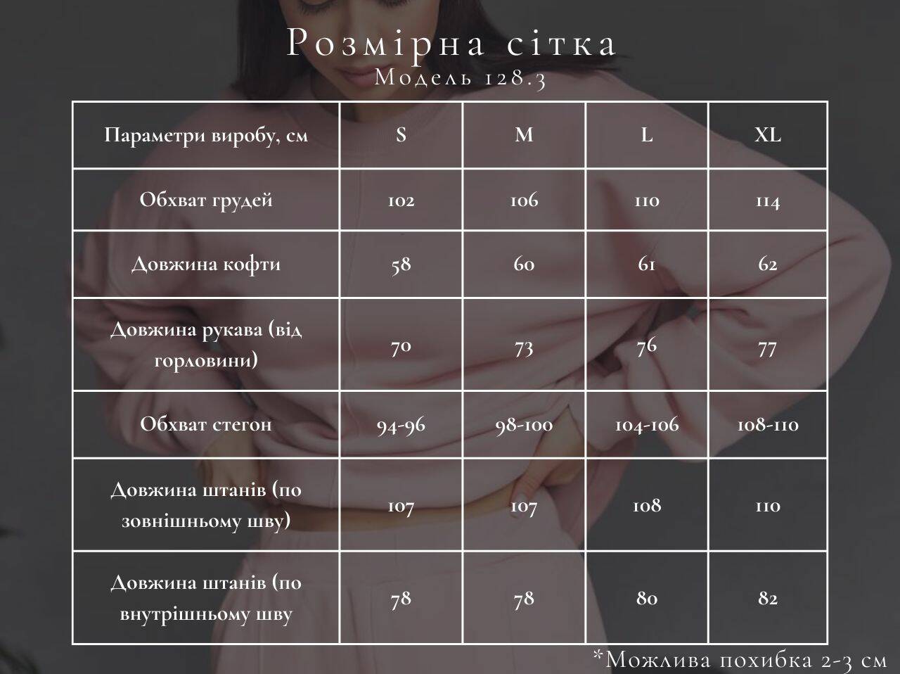 Жіночий спортивний костюм зі світшотом і штанами палаццо — елегантність у спортивному стилі Стильний жіночий костюм у новому прочитанні класики: поєднання вільного світшота і брюк палаццо створює образ, що одночасно дарує комфорт і підкреслює жіночність. Такий комплект чудово підходить для прогулянок, роботи вдома, подорожей або активного відпочинку у місті. Світшот має зручний крій, м’яку фактуру та еластичні вставки по краях, що не сковують рухів. Він ідеально поєднується з широкими брюками, не порушуючи пропорцій тіла. Штани палаццо — це фасон із прямими, розкльошеними штанинами, які красиво лягають по фігурі. Вони візуально подовжують ноги та додають силуету витонченості. Еластичний пояс гарантує зручність у носінні, а м’яка тканина забезпечує комфорт упродовж усього дня. Переваги: Оригінальне поєднання спортивного стилю та елегантності Світшот вільного крою — зручність та легкість Штани палаццо — трендова альтернатива класичним джогерам Підходить для різних типів фігури Ідеальний варіант для щоденного носіння Жіночий костюм зі світшотом і палаццо — це комфорт у поєднанні зі стилем, що не потребує зусиль!