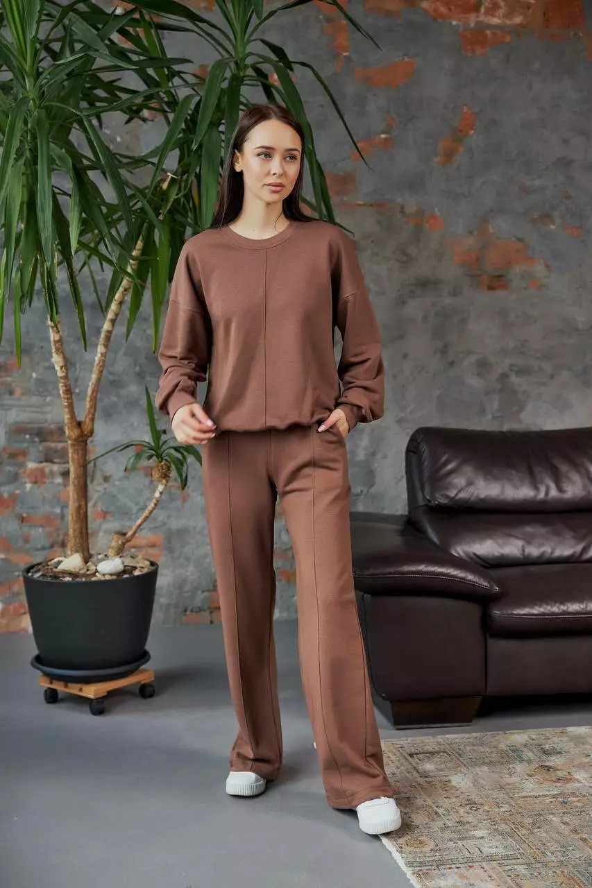 Спортивний костюм жіночий світшот та штани прямі 3х-нитка, мокко (М128.3) S
