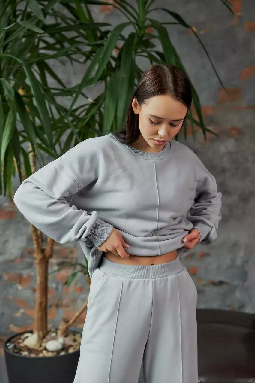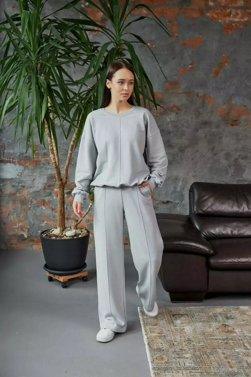 Спортивний костюм жіночий світшот та штани прямі 3х-нитка, попелястий (М128.3) S