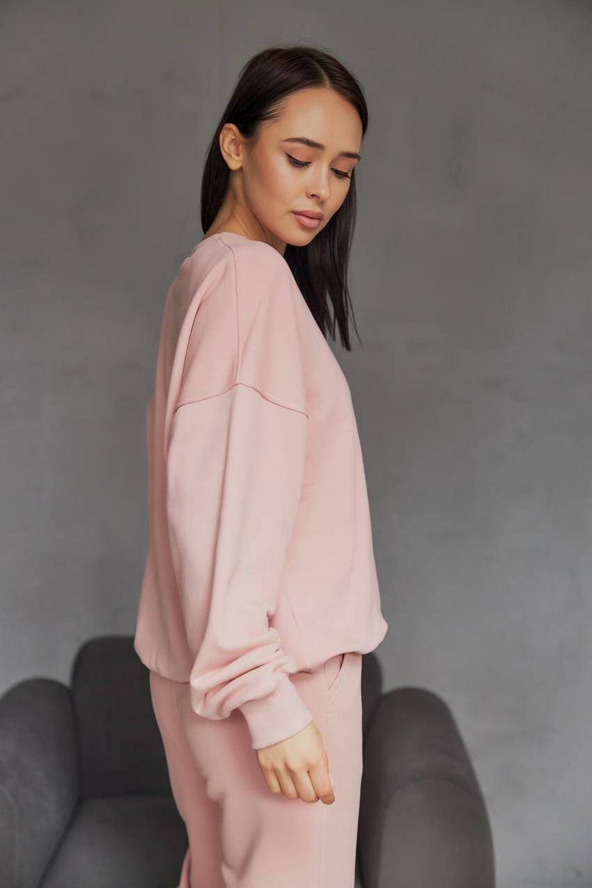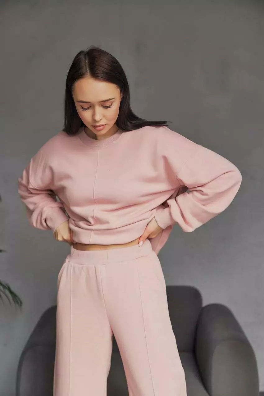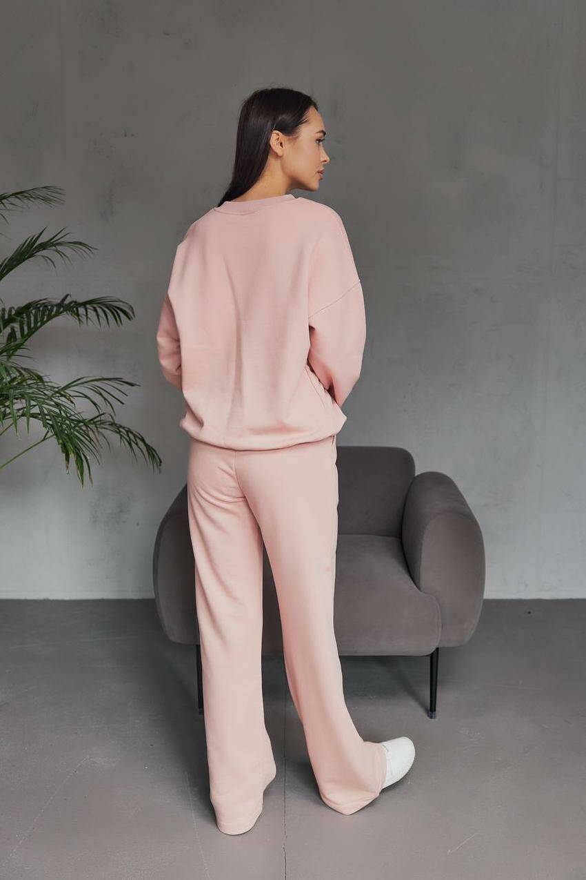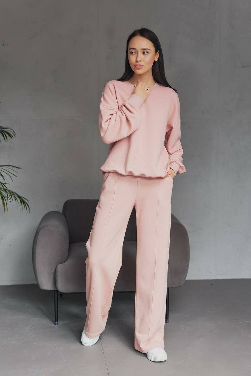 Спортивний костюм жіночий світшот та штани прямі 3х-нитка, пудра (М128.3) S