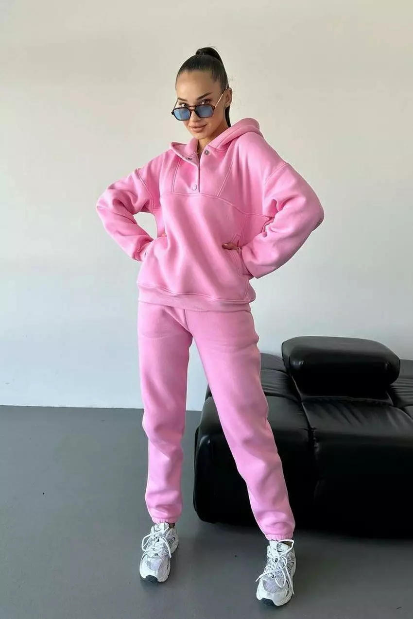 Спортивний костюм жіночий з худі на кнопках та джогерами М142.4, рожевий M