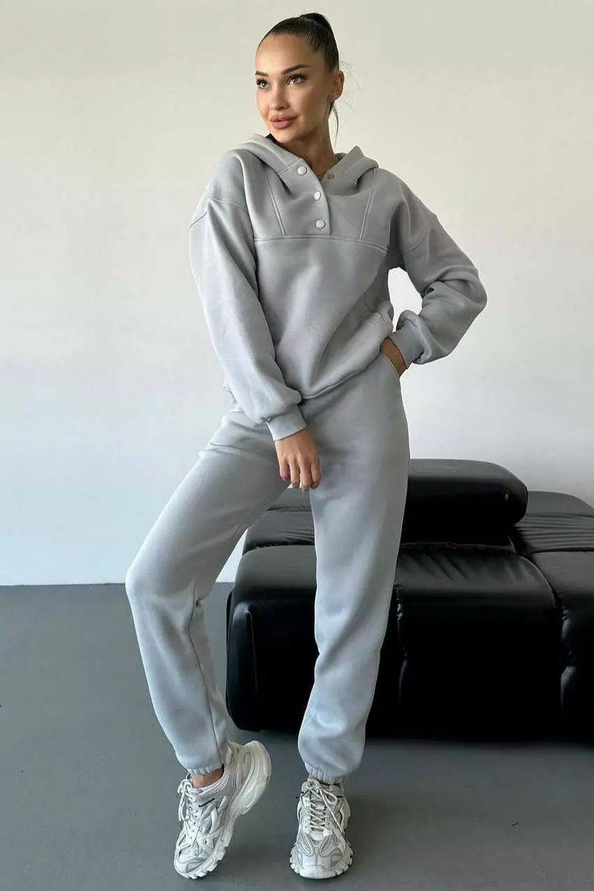 Спортивний костюм жіночий з худі на кнопках та джогерами М142.4,попелястий L