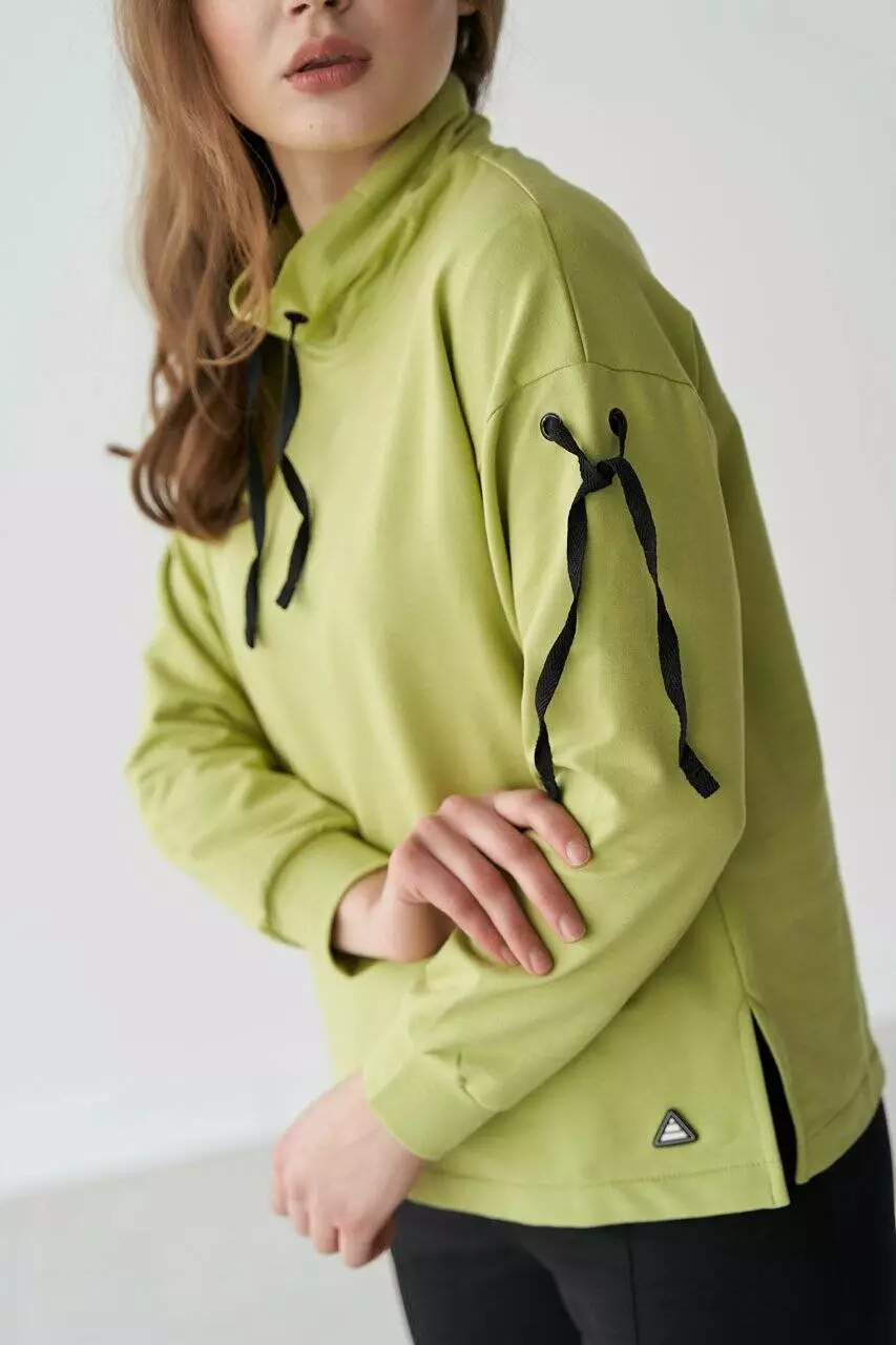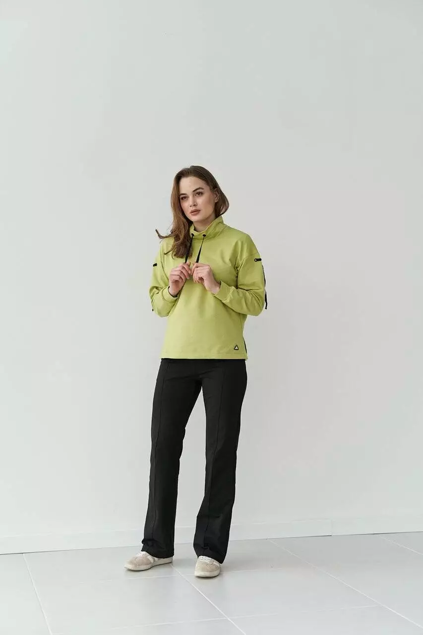Спортивний костюм жіночий з кофтою на шнурках та штани чорні М11 фісташка S