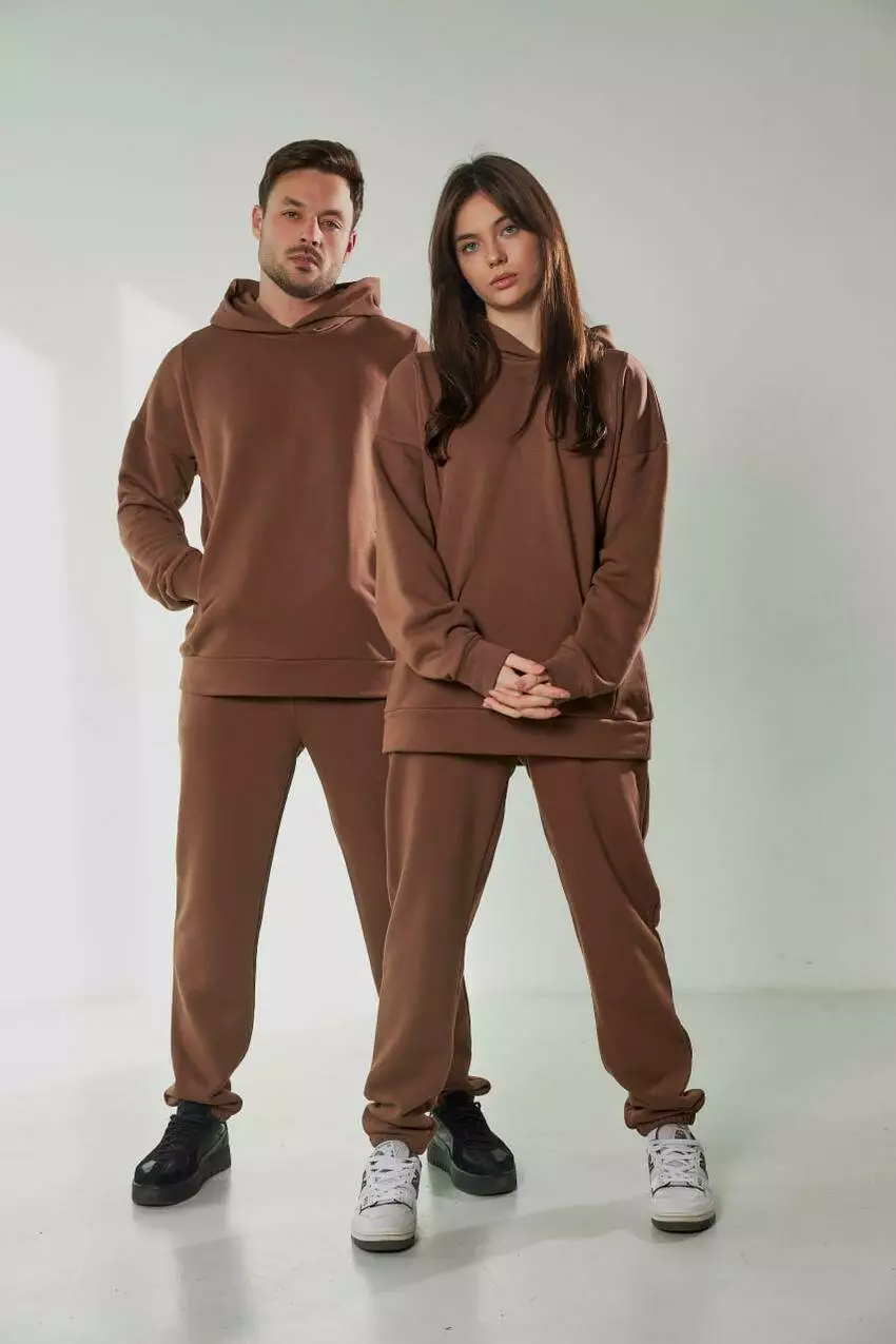 Костюм із тринитки (трикотажу): худі з капюшоном і кишенями та штани-джогери Зручний і стильний костюм із тринитки — універсальний варіант для щоденного носіння. М’який трикотаж приємний до тіла, добре тримає форму та забезпечує комфорт упродовж дня. Особливості моделі Худі: вільний крій, капюшон, практичні кишені, лаконічний базовий стиль. Джогери: штани на еластичному поясі, з манжетами знизу для зручної посадки. Матеріал: тринитка (трикотаж) — щільна, еластична та зносостійка тканина. Переваги Підходить для прогулянок, дому, подорожей та активного відпочинку. Комфортний крій, що не обмежує рухів. Стильний мінімалістичний вигляд, який легко поєднувати з будь-яким взуттям.
