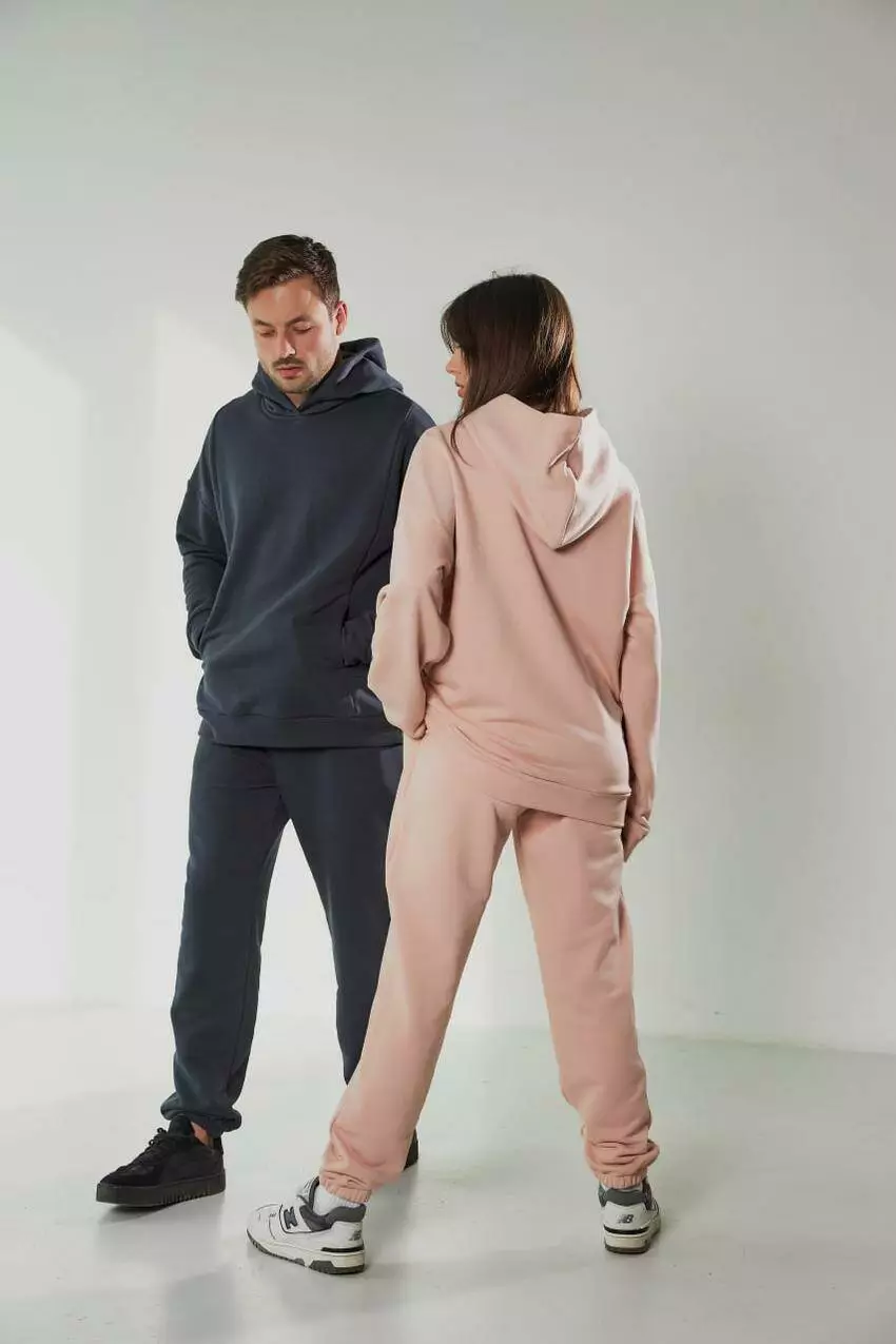 Костюм із тринитки (трикотажу): худі з капюшоном і кишенями та штани-джогери Зручний і стильний костюм із тринитки — універсальний варіант для щоденного носіння. М’який трикотаж приємний до тіла, добре тримає форму та забезпечує комфорт упродовж дня. Особливості моделі Худі: вільний крій, капюшон, практичні кишені, лаконічний базовий стиль. Джогери: штани на еластичному поясі, з манжетами знизу для зручної посадки. Матеріал: тринитка (трикотаж) — щільна, еластична та зносостійка тканина. Переваги Підходить для прогулянок, дому, подорожей та активного відпочинку. Комфортний крій, що не обмежує рухів. Стильний мінімалістичний вигляд, який легко поєднувати з будь-яким взуттям.