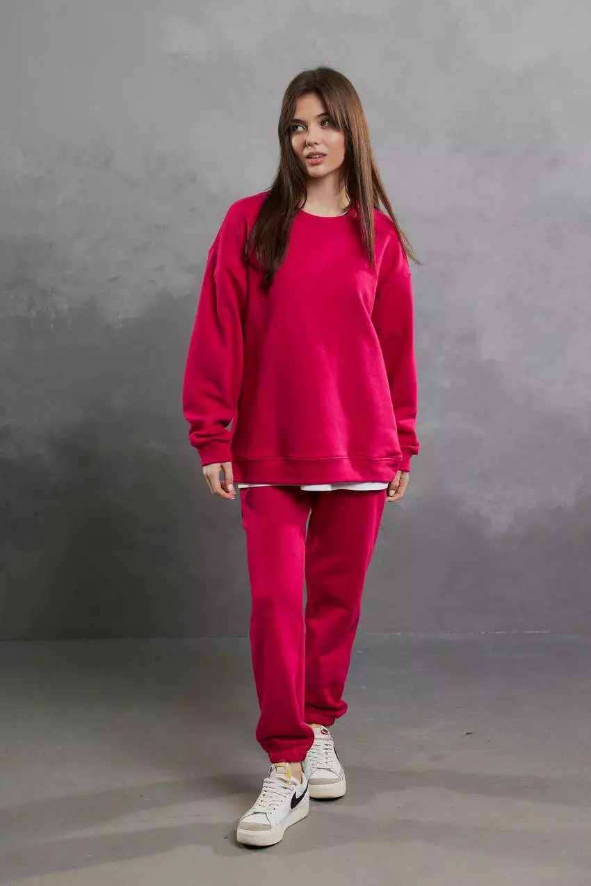 Спортивний костюм жіночий з світшотом та джогерами 3х-петля, малина (М123) L
