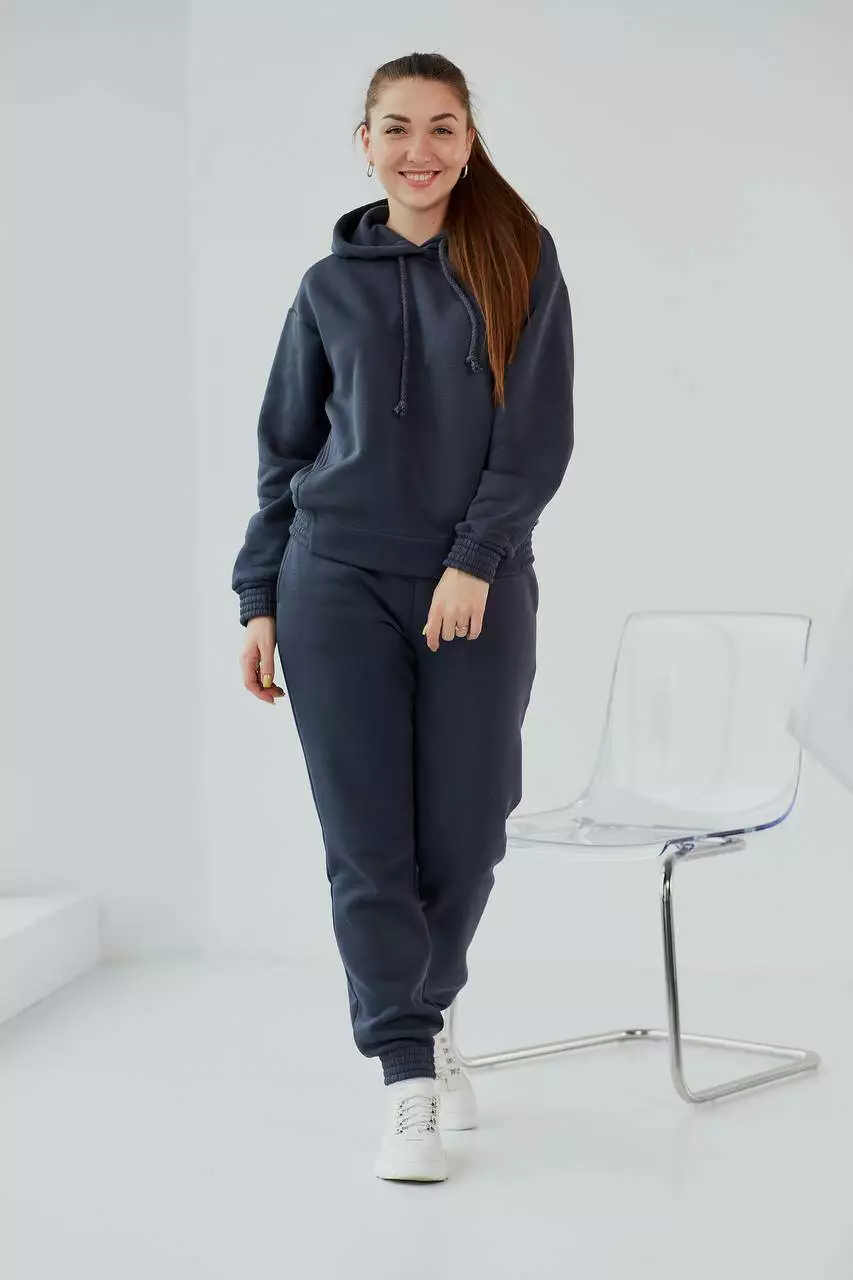 Спортивний жіночий костюм з начосом з джогерами, графіт (М113.4) S