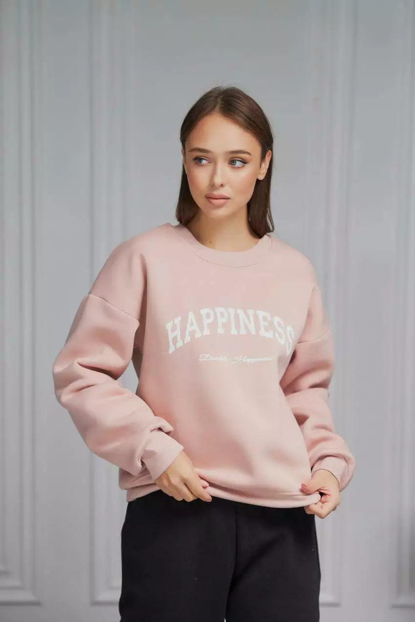 Жіночий світшот з начосом "Happiness" — комфорт і настрій в одному образі Цей теплий світшот з написом "Happiness" створений для тих, хто цінує затишок і позитив у кожному дні. Виготовлений з м’якої тринитки з начосом, він забезпечує тепло навіть у прохолодну погоду, залишаючись при цьому стильним елементом повсякденного гардеробу. Лаконічний дизайн із мотиваційним написом "Happiness" додає легкості та енергії до будь-якого образу. Світшот має класичний або злегка вільний крій, який пасує до різних типів фігур. Його легко поєднувати з джинсами, легінсами, спортивними штанами чи спідницями. Ідеальний для прогулянок, навчання, поїздок або просто затишних вечорів. Надпис нагадує: щастя — у простих речах, а зручний одяг — одна з них. Переваги: М'яка тканина з начосом — тепло та комфорт Напис "Happiness" — модний акцент і позитивний настрій Універсальний крій — пасує до будь-якого стилю Підходить для осінньо-зимового сезону Легко комбінується з базовим гардеробом Світшот "Happiness" — стильне нагадування, що щастя завжди поруч!
