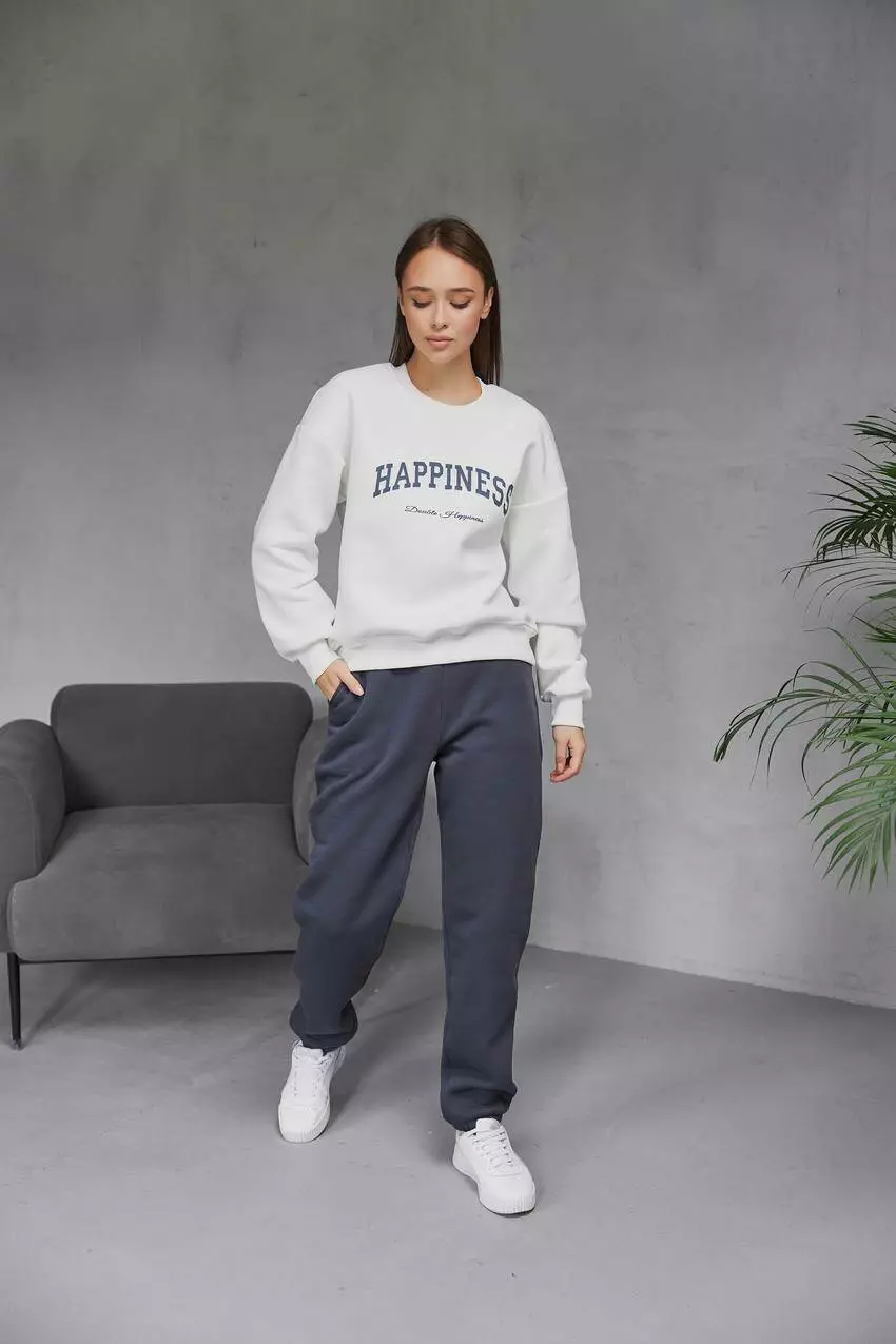 Жіночий світшот з начосом "Happiness" — комфорт і настрій в одному образі Цей теплий світшот з написом "Happiness" створений для тих, хто цінує затишок і позитив у кожному дні. Виготовлений з м’якої тринитки з начосом, він забезпечує тепло навіть у прохолодну погоду, залишаючись при цьому стильним елементом повсякденного гардеробу. Лаконічний дизайн із мотиваційним написом "Happiness" додає легкості та енергії до будь-якого образу. Світшот має класичний або злегка вільний крій, який пасує до різних типів фігур. Його легко поєднувати з джинсами, легінсами, спортивними штанами чи спідницями. Ідеальний для прогулянок, навчання, поїздок або просто затишних вечорів. Надпис нагадує: щастя — у простих речах, а зручний одяг — одна з них. Переваги: М'яка тканина з начосом — тепло та комфорт Напис "Happiness" — модний акцент і позитивний настрій Універсальний крій — пасує до будь-якого стилю Підходить для осінньо-зимового сезону Легко комбінується з базовим гардеробом Світшот "Happiness" — стильне нагадування, що щастя завжди поруч!