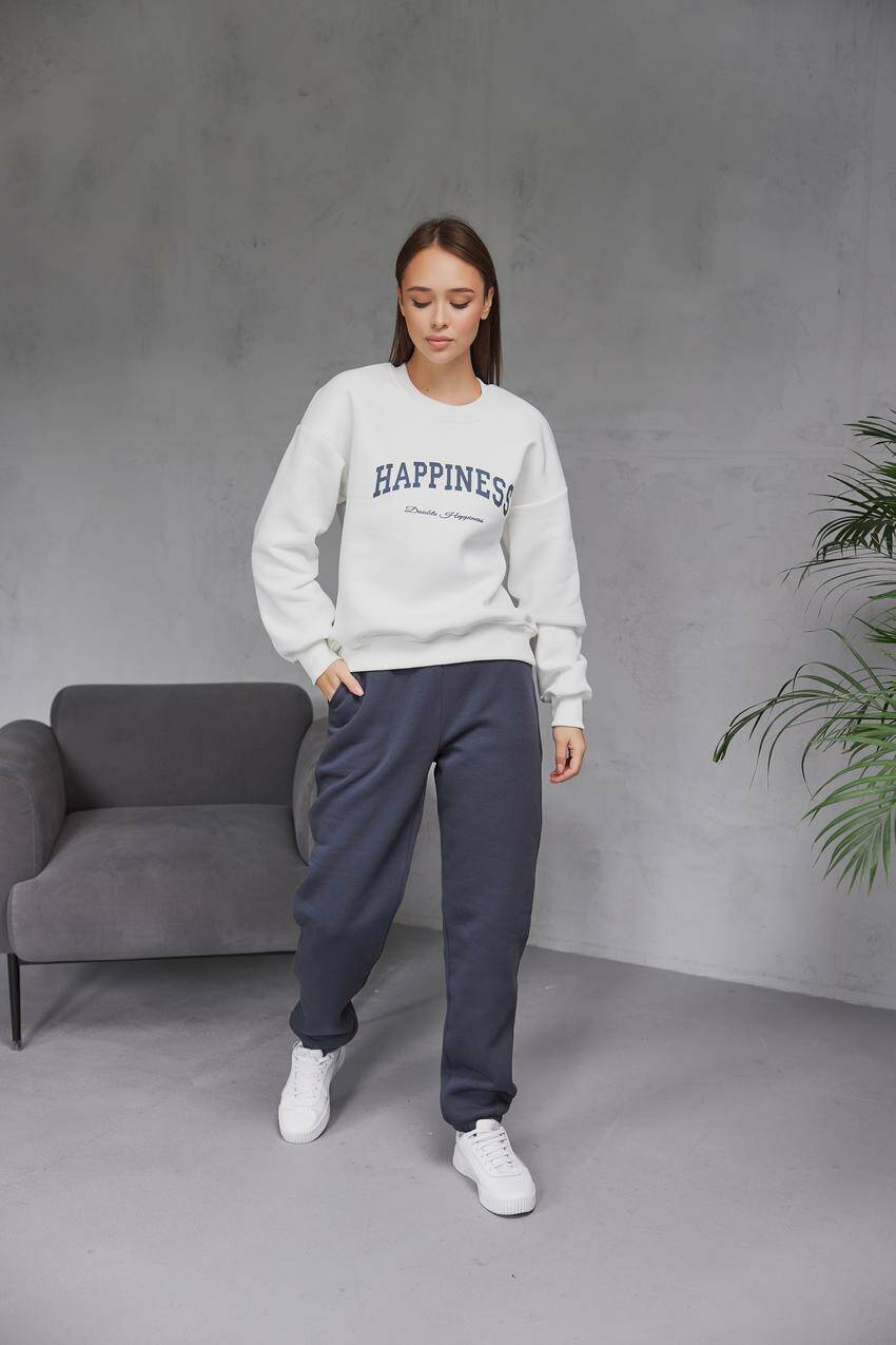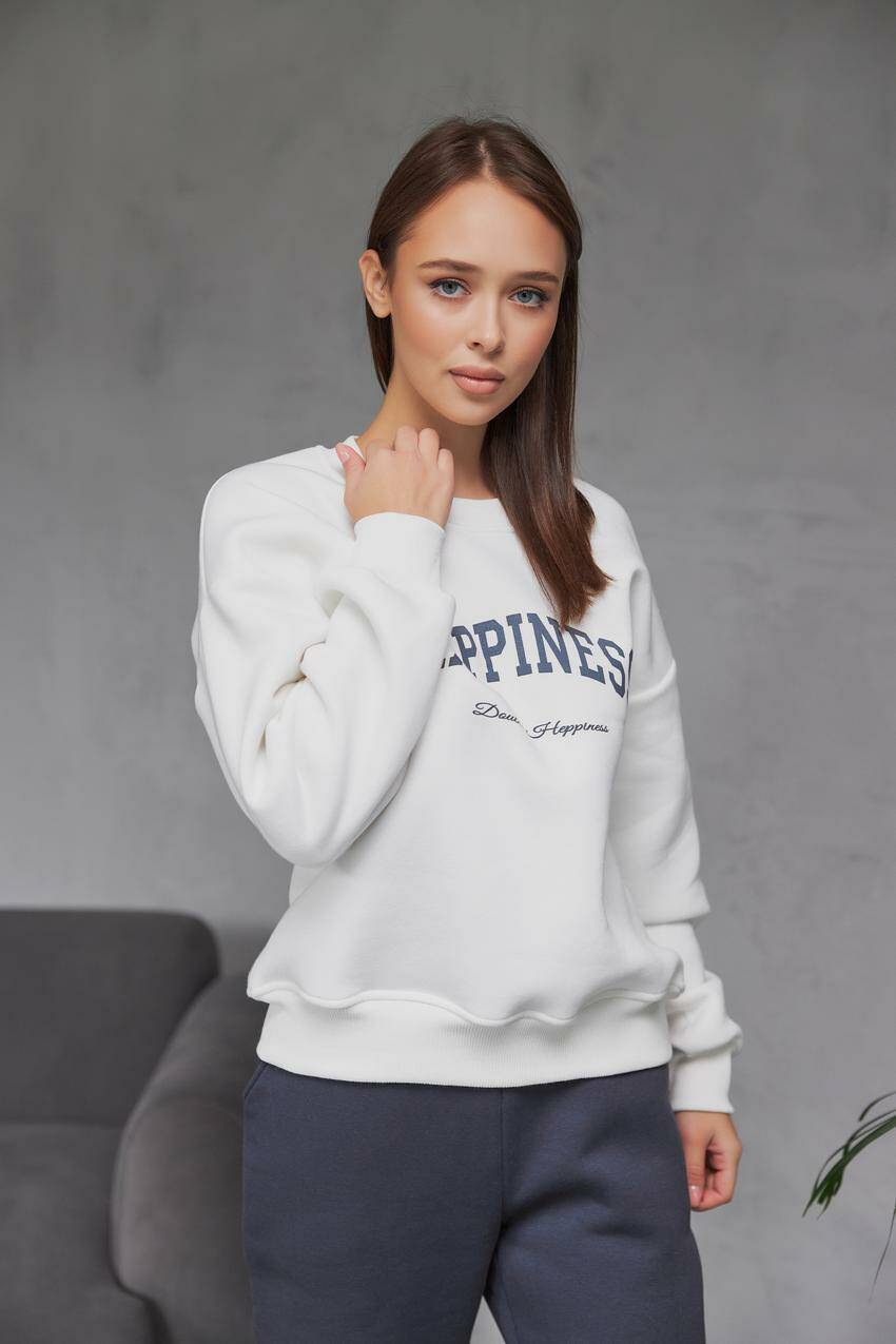 Світшот жіночий начос Happiness крем+синій (М132.4/1) S