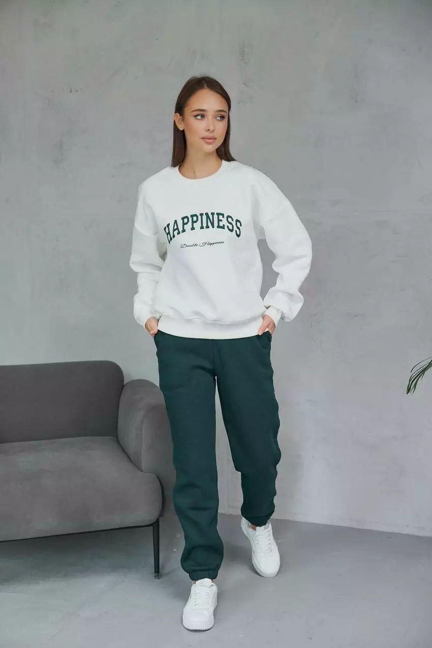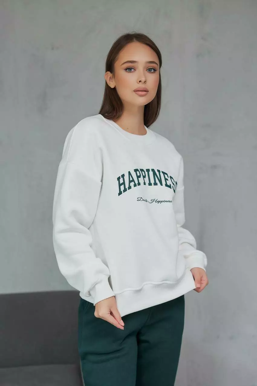 Світшот жіночий начос Happiness крем+зелений (М132.4/1) S