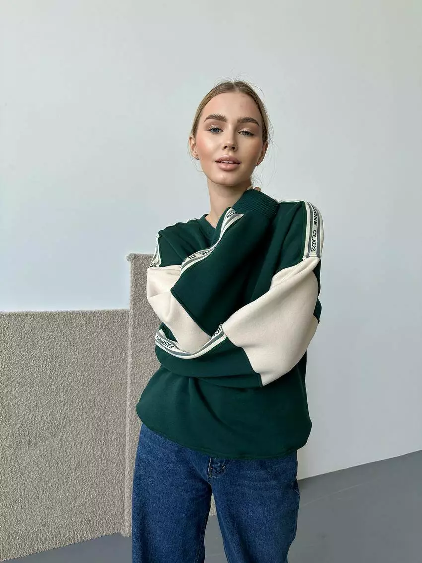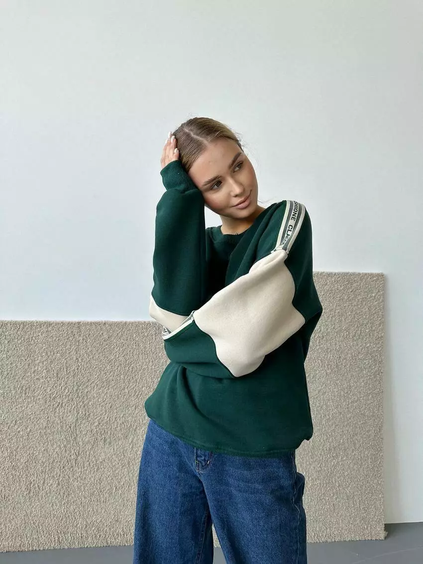 Світшот жіночий з надписом Fashion зелений+беж (М145.4) S