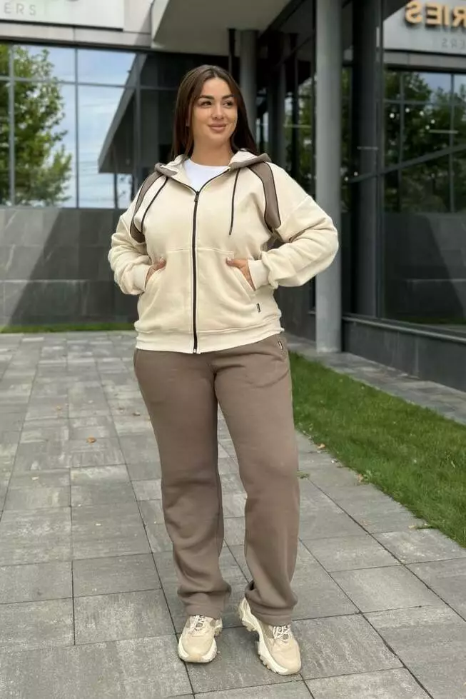 Жіночий теплий костюм на флісі: кофта з капюшоном на замку та прямі штани Теплий і комфортний жіночий костюм на флісі — найкращий вибір для прохолодної погоди. М’який флісовий шар всередині забезпечує затишок, а сучасний крій гармонійно поєднує стиль і практичність. Особливості моделі Кофта: на замку, з капюшоном, зручні кишені, базовий і водночас стильний дизайн. Штани: прямі, комфортна посадка на еластичному поясі. Матеріал: футер на флісі — теплий, м’який, надзвичайно приємний до тіла. Переваги Зігріває в холодну пору року. Не сковує рухи, підходить для активного стилю життя. Підійде для прогулянок, дому та подорожей.