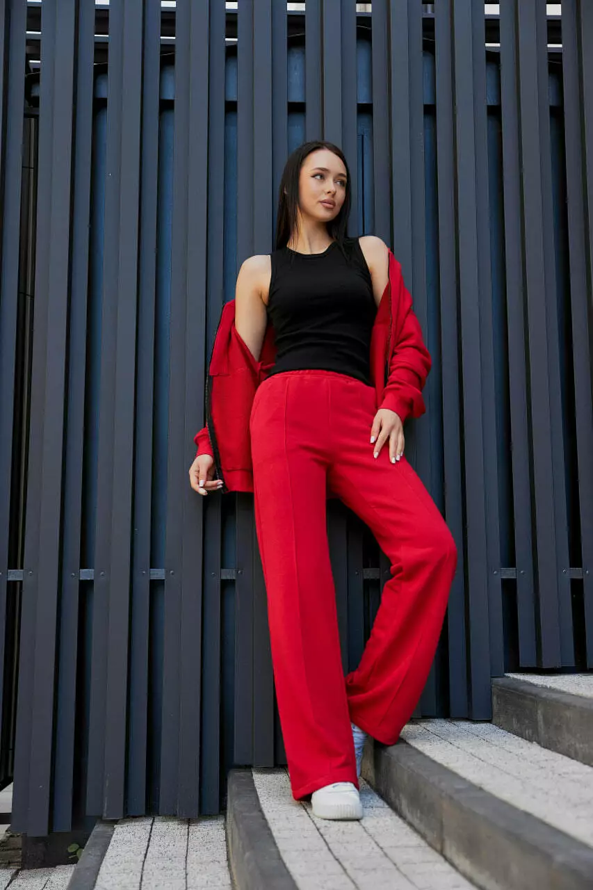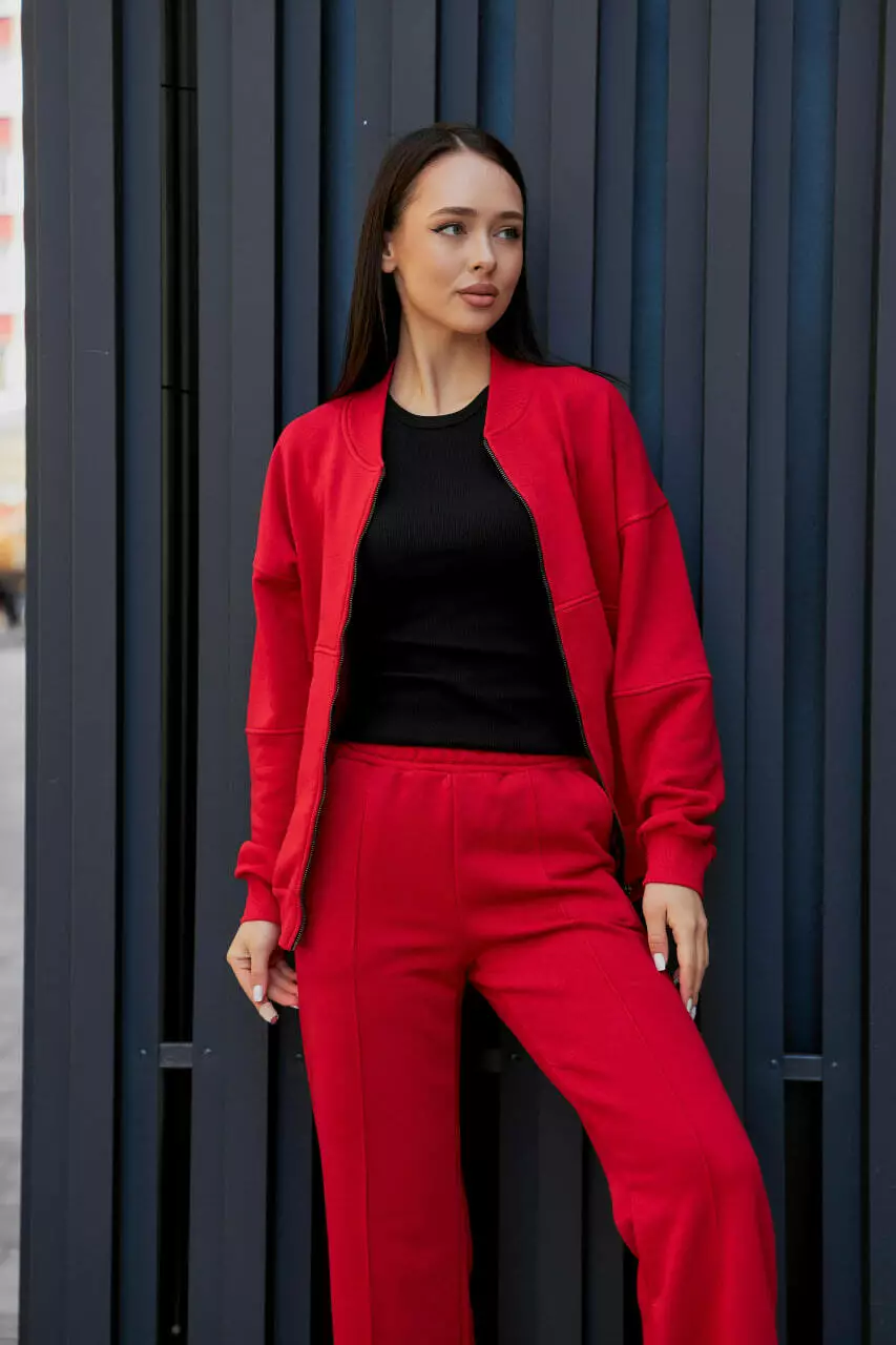 Жіночий костюм з бомбером на замку М154.2 (2х нитка), червоний S