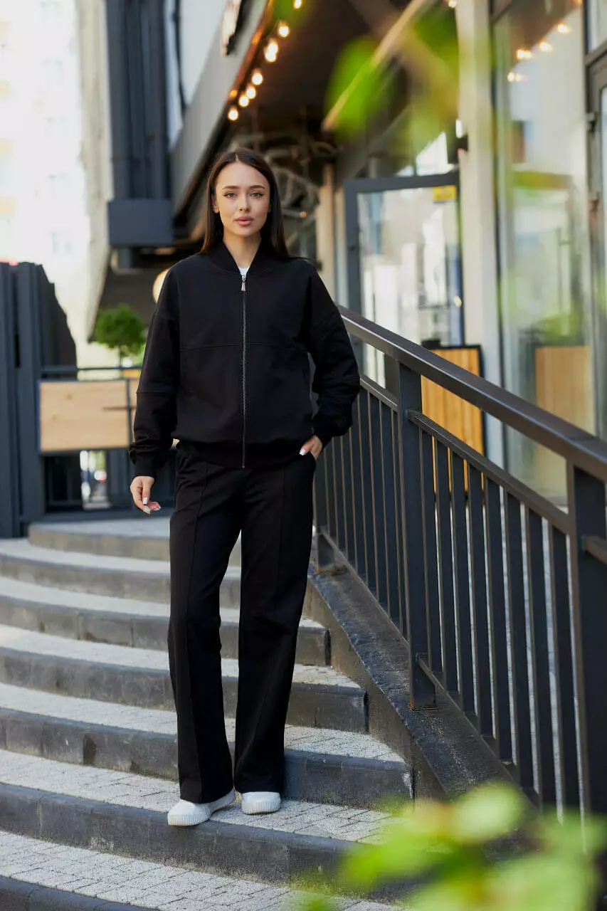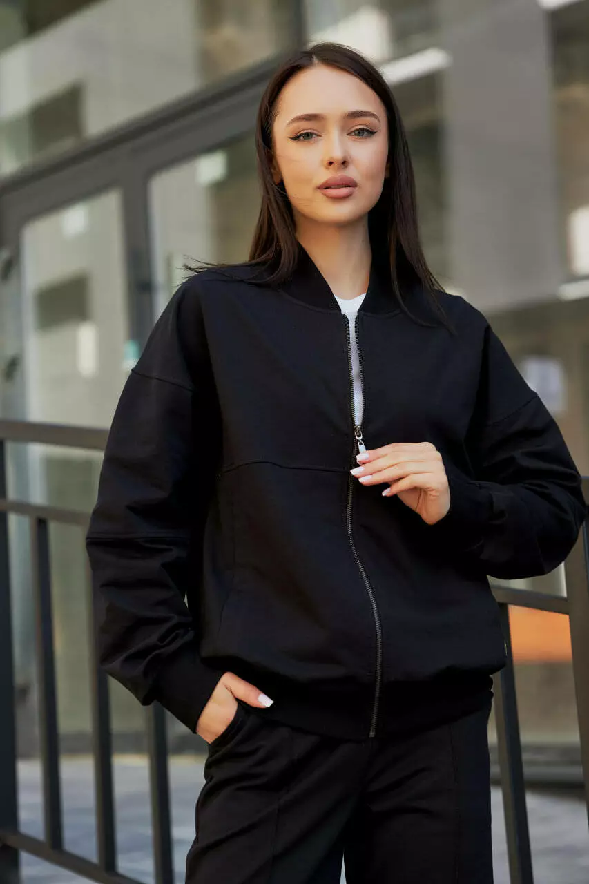 Жіночий костюм з бомбером на замку М154.2 (2х нитка), чорний S