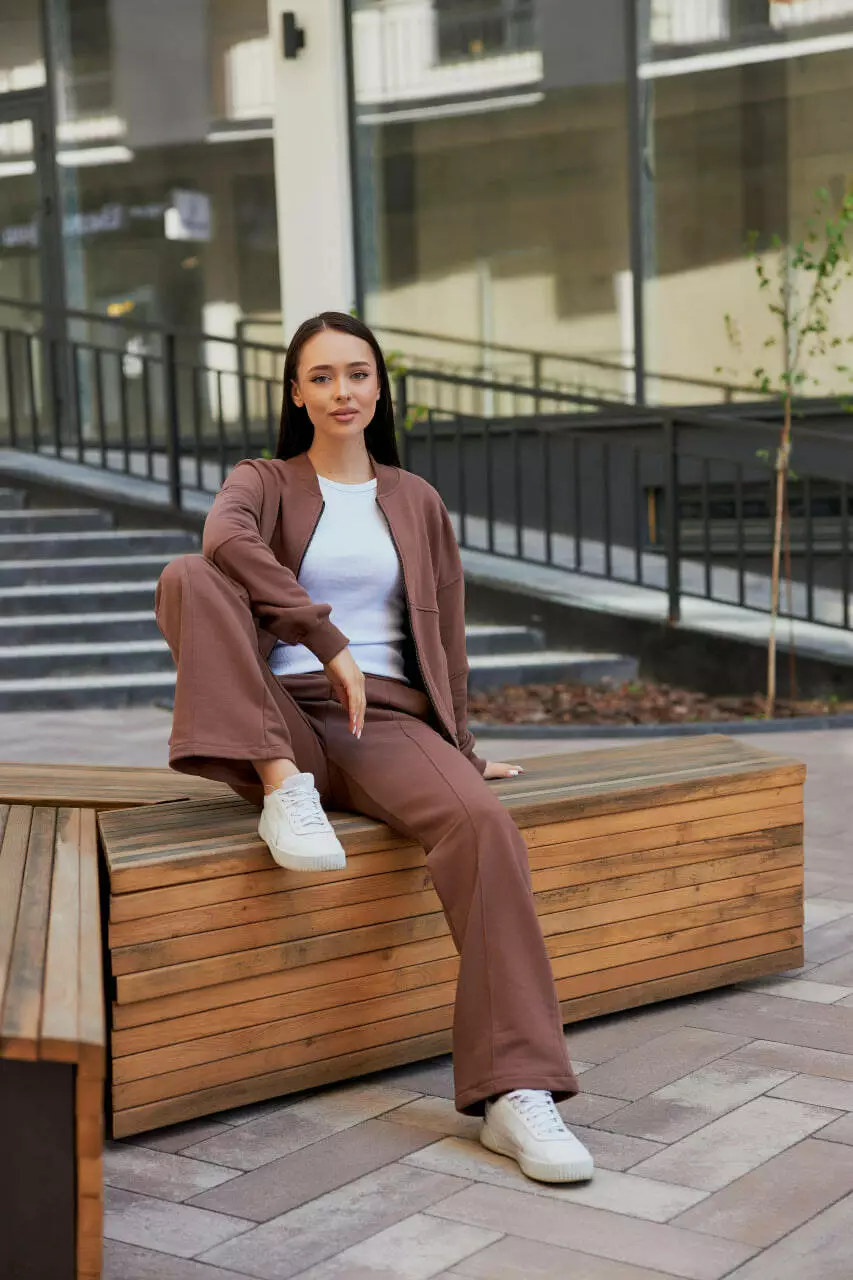 Жіночий костюм з бомбером на замку М154.2 (2х нитка), мокко S