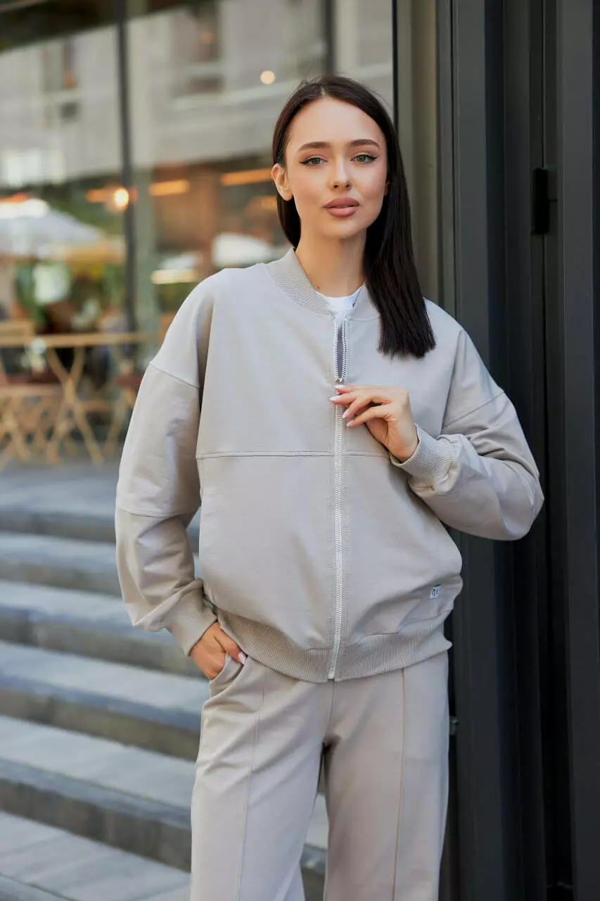 Жіночий костюм з бомбером на замку М154.2 (2х нитка), світло-сірий S