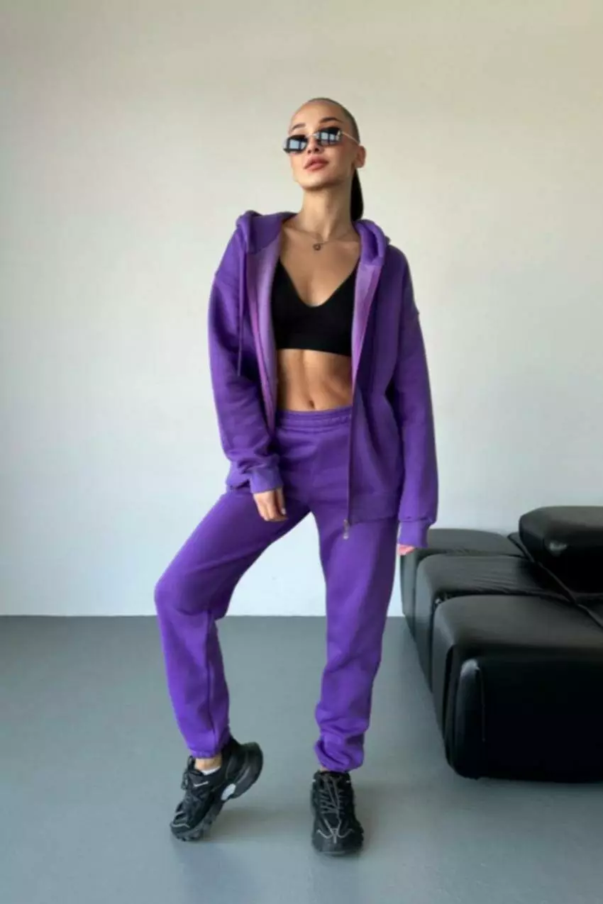 Жіночий спортивний костюм із начосом з худі на замку та джогерами М136.4, фіолетовий S