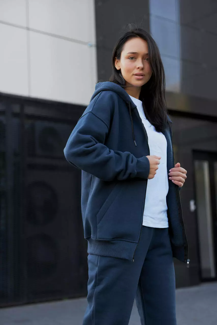 Жіночий спортивний костюм із начосом (худі на замку + джогери) Стильний та універсальний жіночий спортивний костюм із начосом стане незамінною частиною вашого гардеробу. Комплект, що складається з худі на замку та джогерів, ідеально підходить для прогулянок, подорожей або активного відпочинку в осінньо-зимовий сезон. Худі з капюшоном має зручну застібку-блискавку та манжети на рукавах і по низу виробу, що забезпечує максимальний комфорт. Джогери з еластичною гумкою в поясі та понизу штанин доповнені функціональними кишенями, що робить цей костюм практичним та зручним. Завдяки своєму лаконічному дизайну та теплому трикотажу з начосом, костюм легко комбінується з різними елементами гардеробу, що дозволяє створювати як спортивні, так і більш вишукані образи. Особливості: Комплект: худі на замку + джогери Зручні манжети та капюшон Еластична гумка в поясі та понизу штанів Практичні кишені для зручності Цей костюм поєднує комфорт і стиль, роблячи його ідеальним вибором для активного способу життя! Розмірна сітка S M XL Довжина кофти 67 67 70 Ширина кофти 52 54 60-61 Довжина рукава від капюшона 74 75 78 Ширина резинки у стягненому стані 33 34 38 у розтягнутому 43 45 53 Ширина стегон 50 53 59 Довжина штанів по зовнішньому шву 103-104 105 107 по внутрішньому 74 76 79