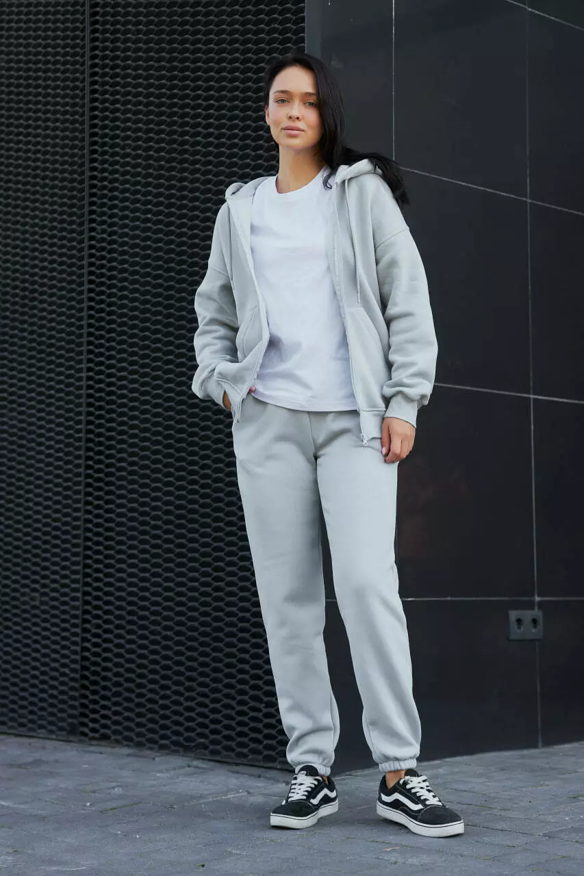 Жіночий спортивний костюм M136.3 з худі на замку і джогерами (3-х нитка), попелястий S
