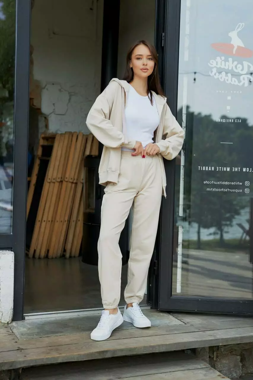 Жіночий спортивний костюм M136.3 з худі на замку і джогерами, (3-х нитка), таш S