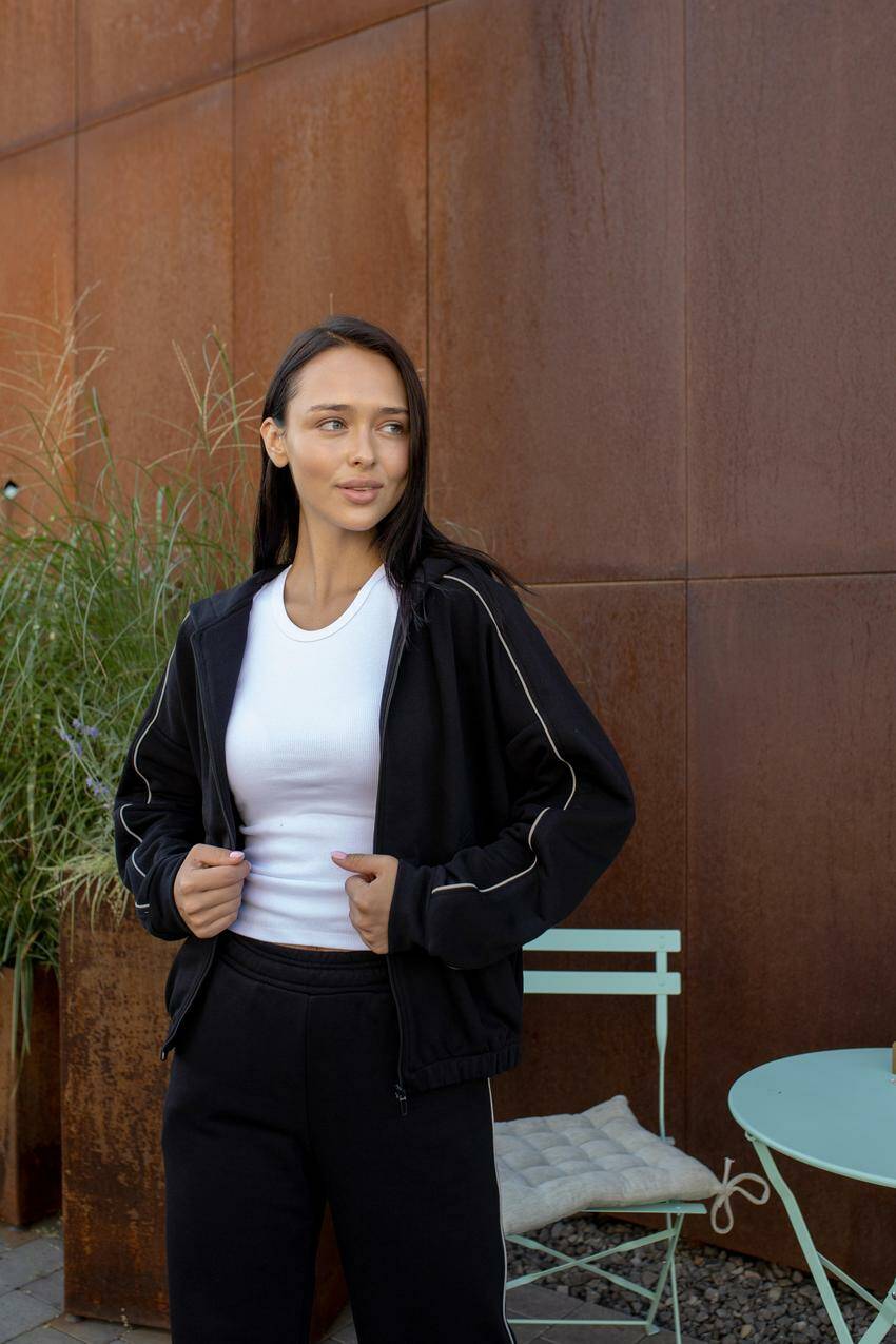 Жіночий спортивний костюм на замку (2-х нитка) М149.2, чорний S