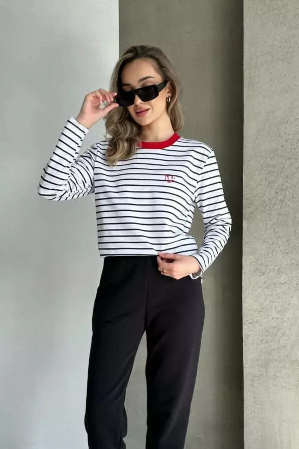 Жіночий світшот у чорно-білу смужку М153.2 з червоною горловиною S