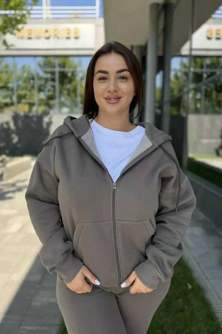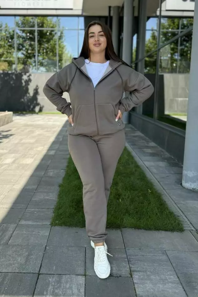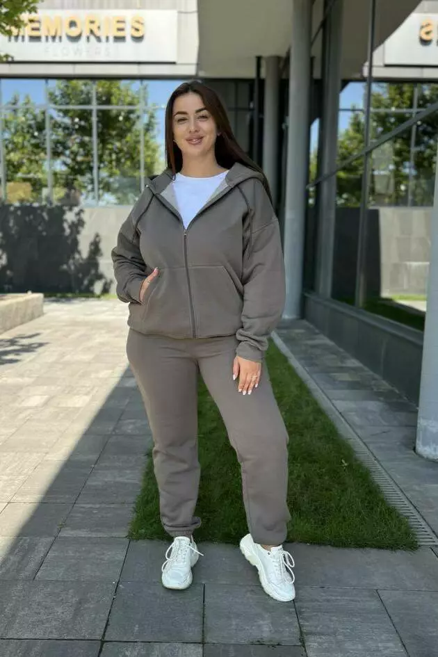 Цей теплий жіночий спортивний костюм у форматі батал – ідеальний вибір для прохолодної погоди. Виготовлений із м'якого та затишного матеріалу, костюм забезпечує максимальний комфорт і тепло. Комплект складається з кофти на блискавці з капюшоном та штанів, що створюють практичний і стильний образ для щоденного носіння або активного відпочинку. Кофта має зручний капюшон, манжети на рукавах та по низу, що захищають від вітру. Штани мають еластичний пояс і манжети знизу, що забезпечують ідеальну посадку та свободу рухів. Такий костюм чудово підходить для повсякденних прогулянок або спортивних активностей. Особливості: Комплект: кофта з капюшоном + штани Формат: батал для зручної посадки Тепла і затишна тканина для прохолодної погоди Еластичні манжети на рукавах і штанах Зручний капюшон для додаткового захисту від холоду Цей костюм поєднує комфорт і практичність, роблячи його ідеальним вибором для активного способу життя або щоденного використання в холодну пору року!