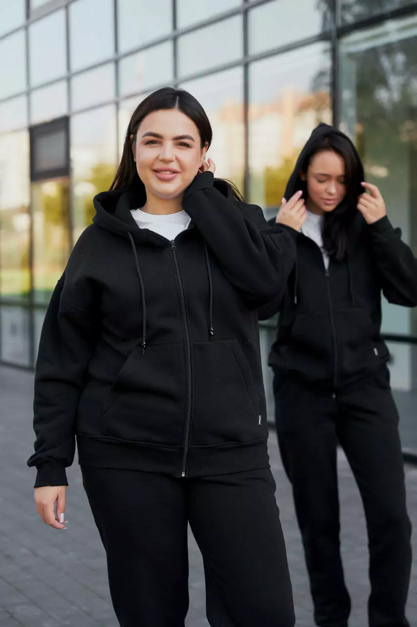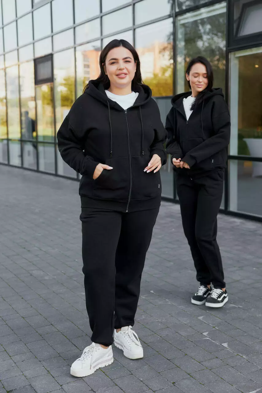 Жіночий теплий спортивний костюм з капюшоном (Батал), чорний (М137.4) XXL