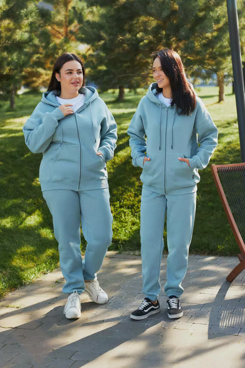Жіночий теплий спортивний костюм з капюшоном (Батал), голубий (М137.4) XXL