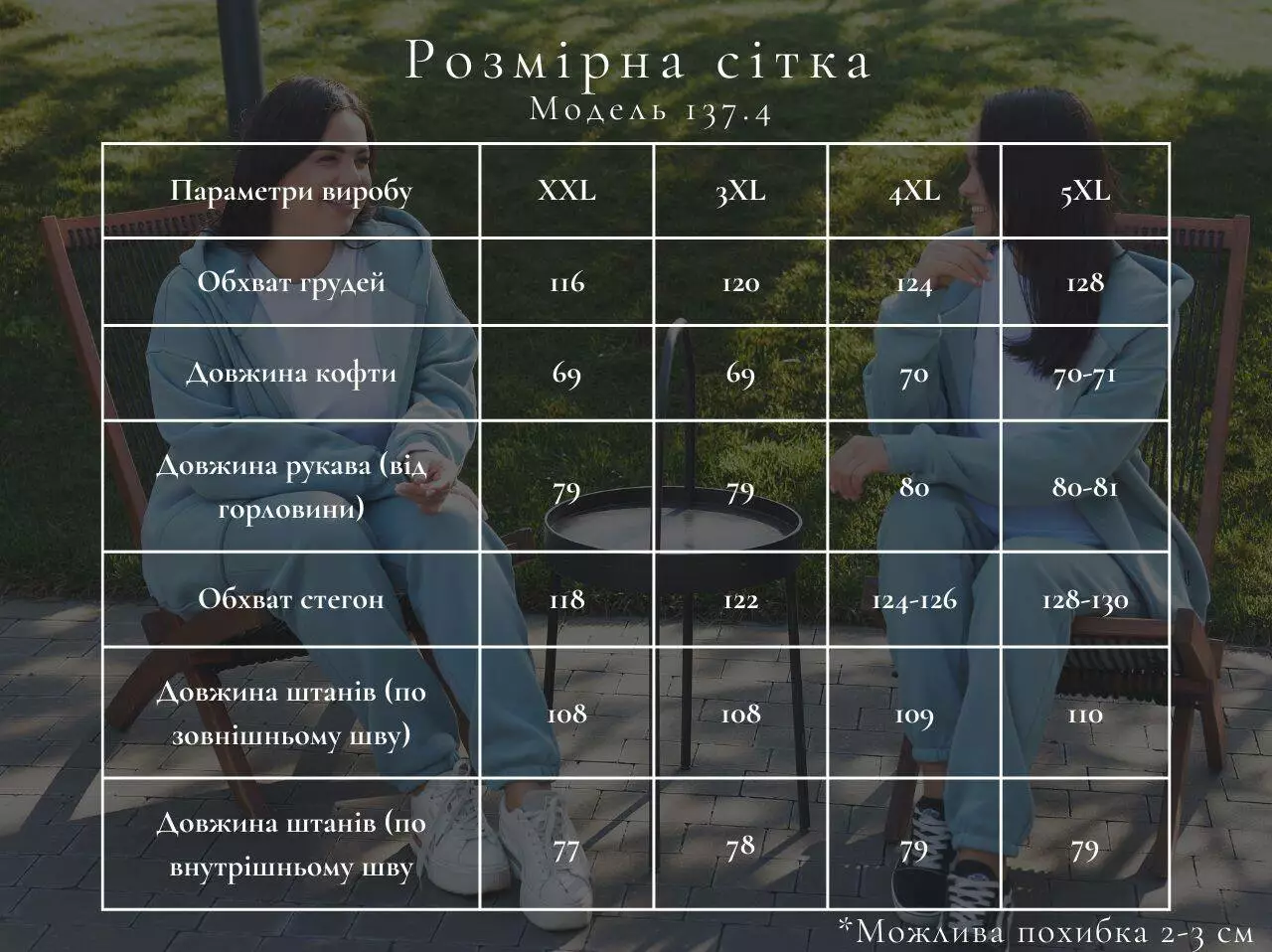 - Параметри: XXL, 5XL, 4XL, 3XL