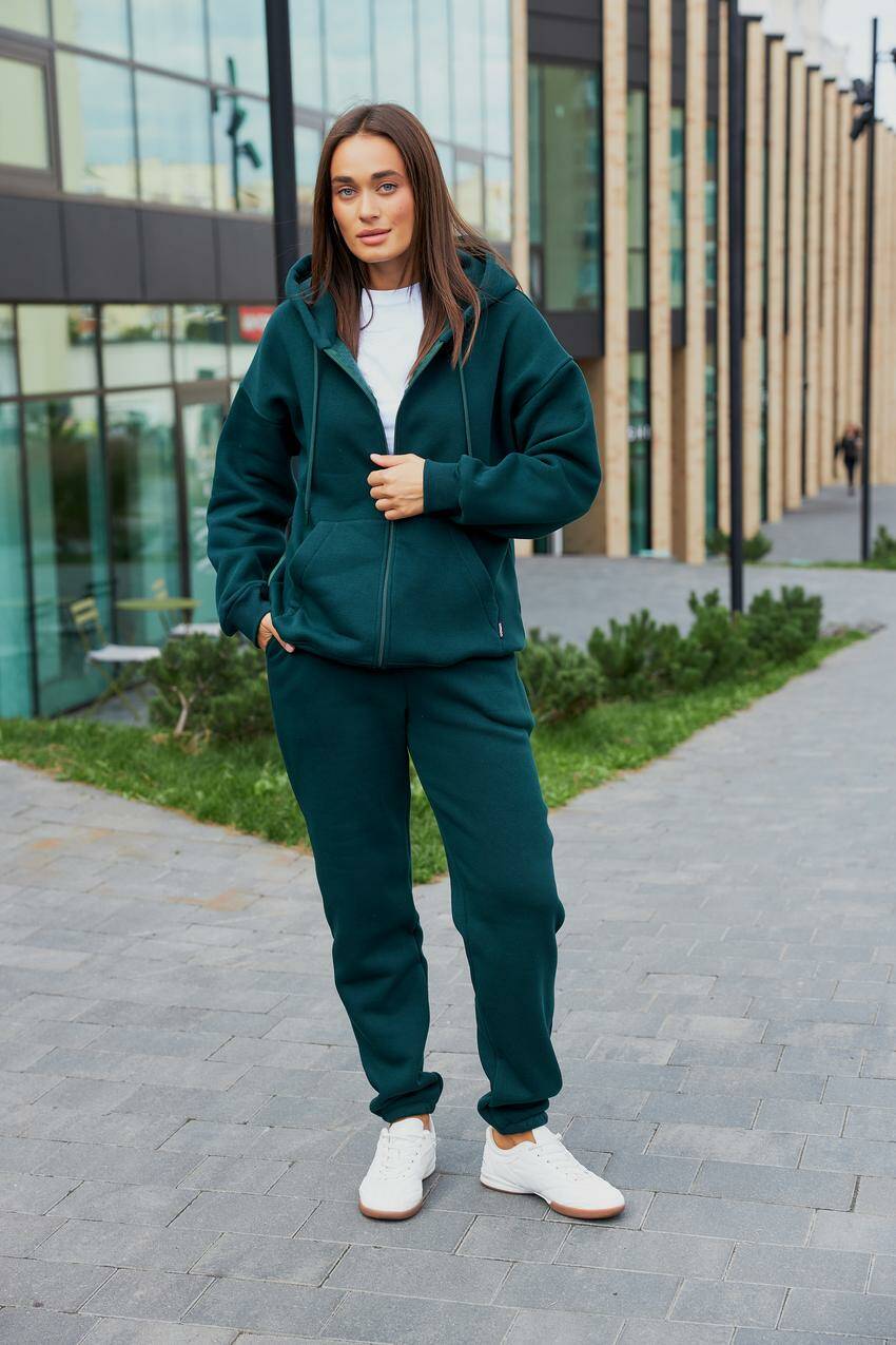 Жіночий теплий спортивний костюм з капюшоном (Батал), смарагд (М137.4) 3XL